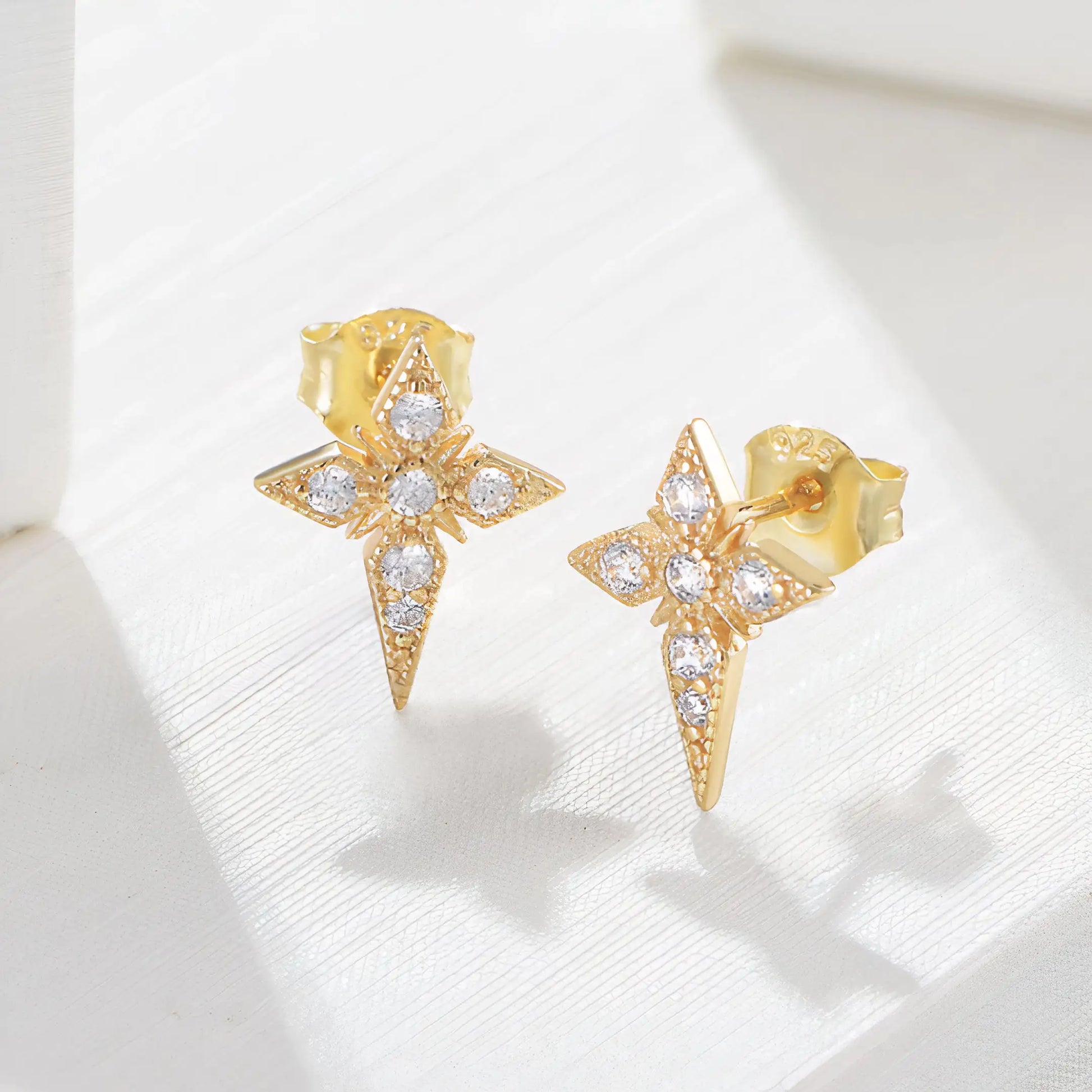 Make your stack the star of the show with the Luzora Celestial Stud Earrings, designed to reflect light, direction, and quiet strength. The asymmetrical pavé star design symbolizes guidance and hope while adding a modern celestial touch to any ear look. Crafted from 925 sterling silver and finished with a thick layer of 18K gold plating, these studs are accented with sparkling cubic zirconia for a refined, everyday glow. Lightweight and versatile, they are made to be worn daily—whether as a subtle reminder of faith, purpose, or personal meaning.